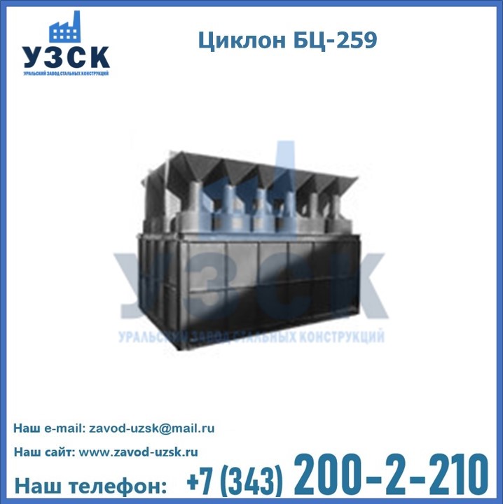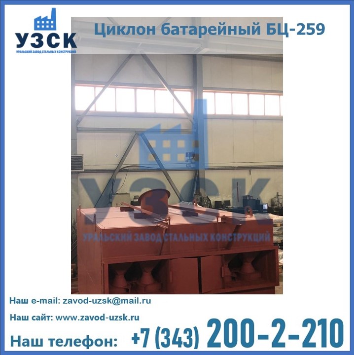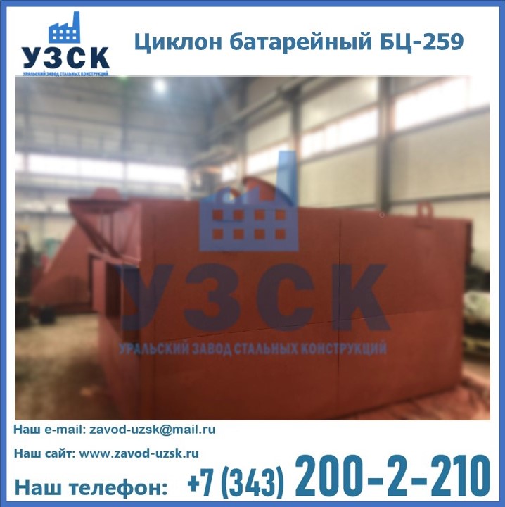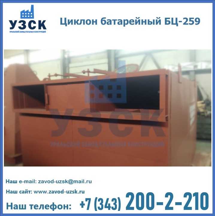Приобрести качественное оборудование, в том числе, циклоны БЦ-259, можно в компании УЗСК в Чите. Мы предлагаем долговечную и надежную продукцию по приемлемой цене. Заказать и купить циклоны или другие изделия высокого качества можно через сайт Уральского Завода Стальных Конструкций, или позвонив по указанному в разделе «Контакты» телефону.