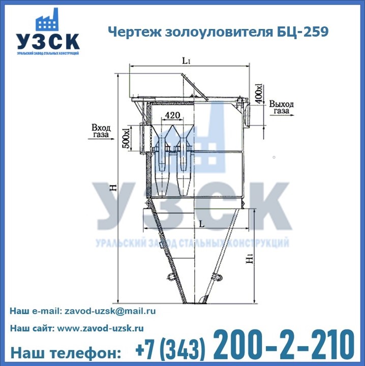Если вы планируете купить то или иное оборудование, например, циклоны-золоуловители БЦ-259, то рекомендуем заказать данный товар на сайте УЗСК. Мы производим и реализуем продукцию высокого качества по приемлемой цене. Эксперты Уральского Завода Стальных Конструкций в Чите проконсультируют вас по всем вопросам, помогут сделать выбор и оформить заказ без лишних временных затрат. Мы гарантируем соответствие нашей продукции всем требованиям ГОСТ и ТУ, а также износостойкость и высокую производительность предлагаемого оборудования. Если требуется изготовить циклон нестандартных размеров, то такой вариант выполнения заказа тоже предусмотрен, так как предприятие имеет собственные производственные площади и надежных поставщиков. На все поставляемое или производимое оборудование имеются чертежи и прочая техническая документация. Заказать и купить циклоны или прочее оборудование высокого качества и по доступной цене можно через наш сайт или по указанному в разделе «Контакты» телефону.
