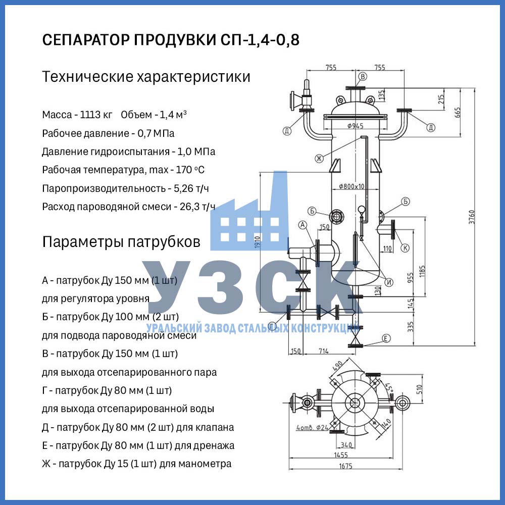 | СП-1,4-0,8 | 1.4 | 0.7 | 170 | 5.26 | 1113 |