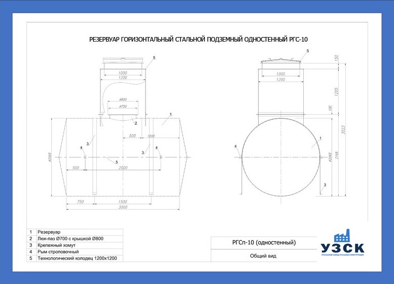 РГСДн-10: горизонтальный резервуар двустенный наземного расположения;