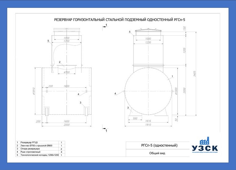РГСп-5: горизонтальный резервуар одностенный подземного расположения;