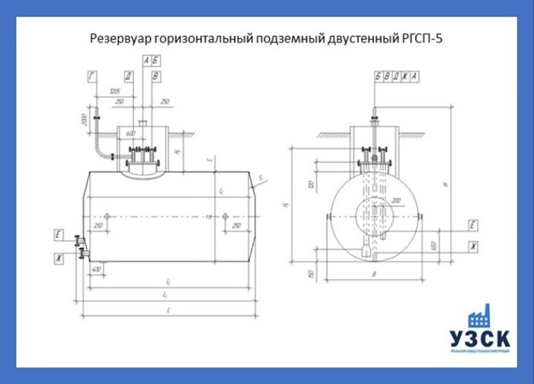 РГСДп-5: горизонтальный резервуар двустенный подземного расположения.